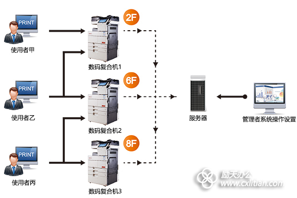 励天办公的打印安全解决方案中,可对打印的设备、时间、内容敏感字等作出规则限制,但凡有打印作业触及规则的,系统会自动判定打印作业的最终去向。如果有涉及机密安全不得外流的文件,将会拒绝打印或提交送审,从而保证资讯的高度安全;而一些不重要的内部文件,可以强制双面打印或将彩色改为黑白输出,以利于绿色环保。