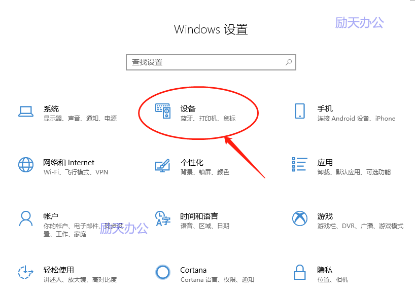 5、在设置窗口中,点击“设备”。