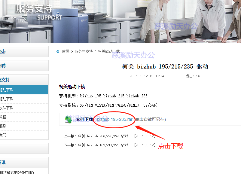 1、本公司网站中下载驱动程序,请区分机器品牌及型号。(驱动链接:柯美驱动、震旦驱动),也可以直接在页面右上角输入机器型号搜索(输入型号数字即可)。