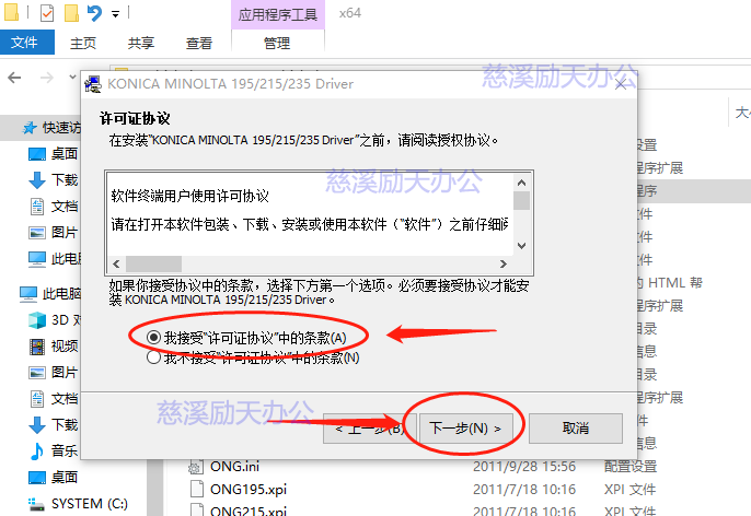 4、点击“下一步”,然后选择“我接受许可证”选项后,再次点击“下一步”。