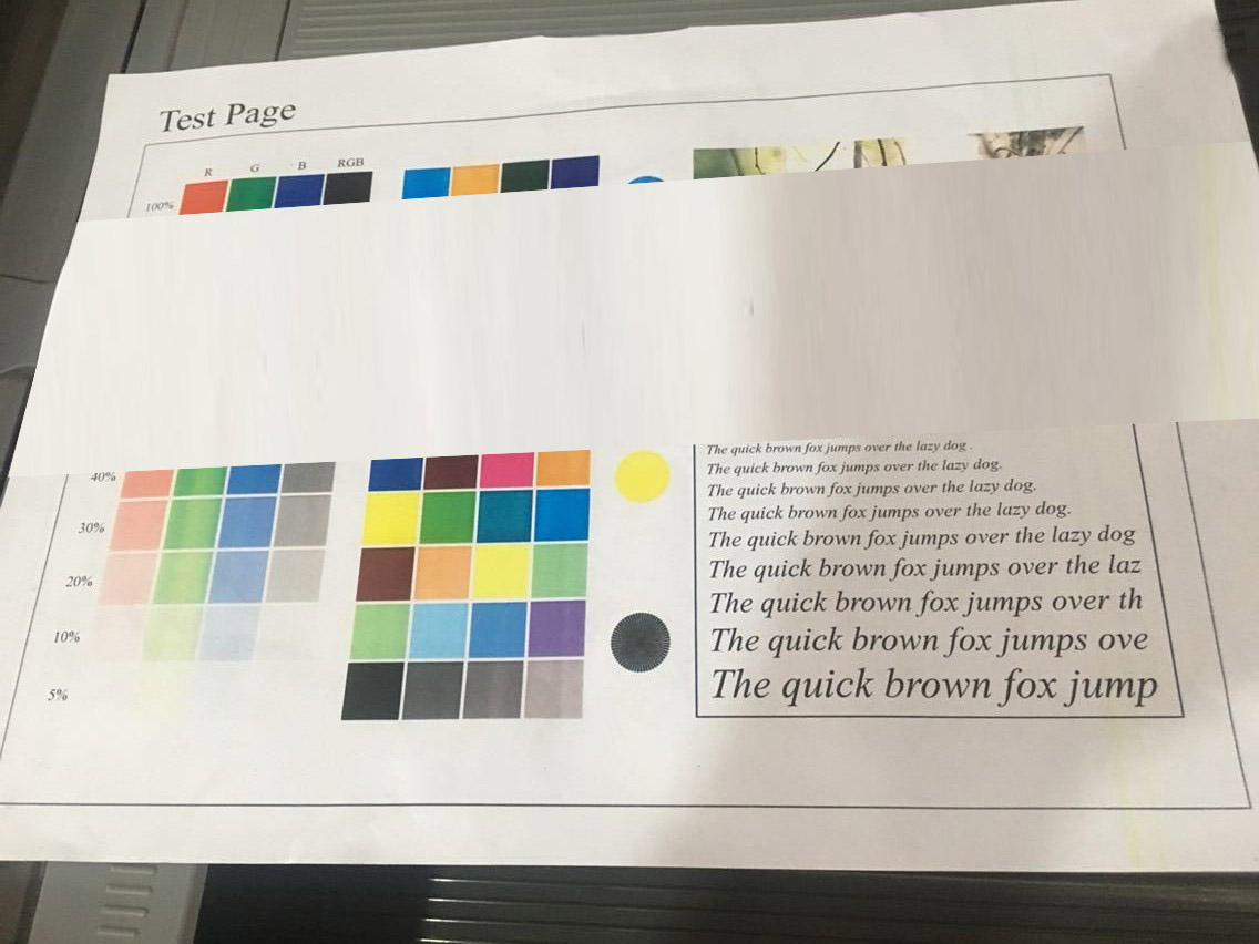 用户使用Windows10查看器打印图片,打印内容两边正常,中间内容缺失,但更换其他软件打印测试正常。